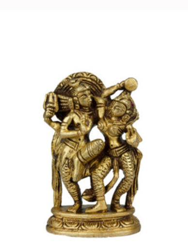 Liten mässingsstaty av gudinnan Parvati och guden Shiva som dansar sin kosmiska dans. Statyn symboliserar den kvinnliga och manliga energin i universum som dansar tillsammans i glädje, njutning, harmoni och balans.