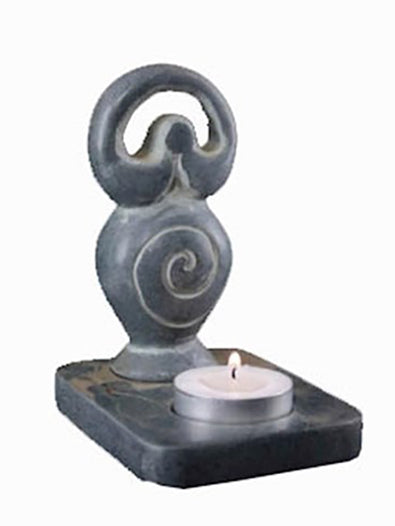 Vacker i sin enkelhet är denna gudinnestaty som även har en ljushållare för värmeljus. Färgen kan variera från grå till svart, på grund av att den är tillverkad av naturligt material.